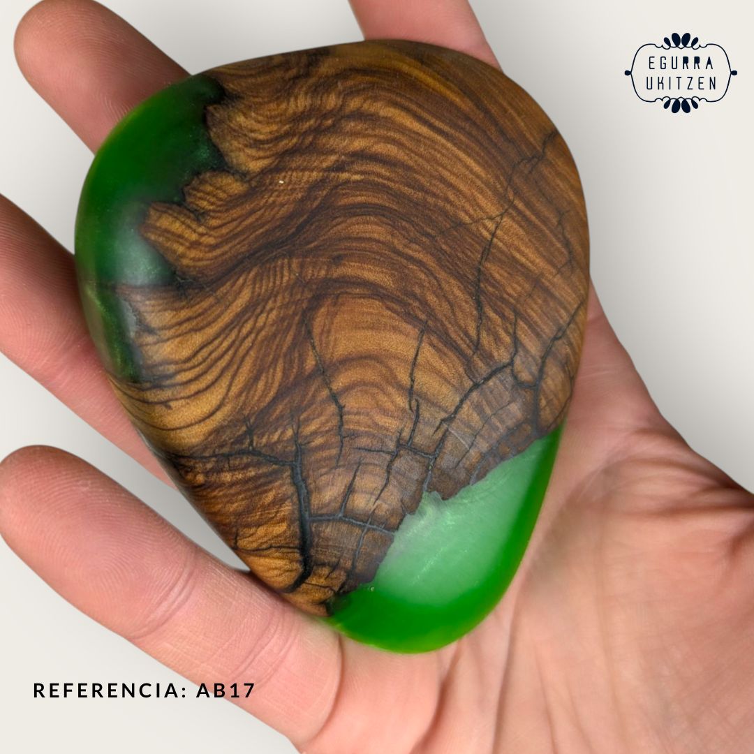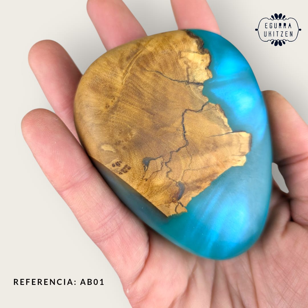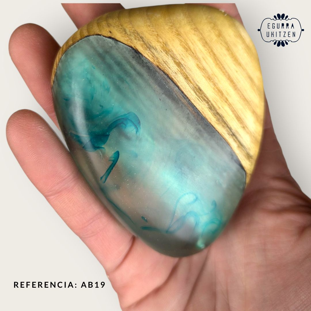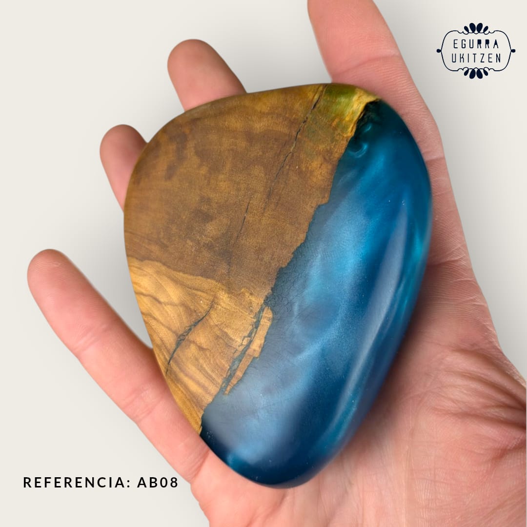 Elegimos cuidadosamente cada pieza de madera, generamos diferentes formas y mezclamos con resina y diferentes tintes de color.