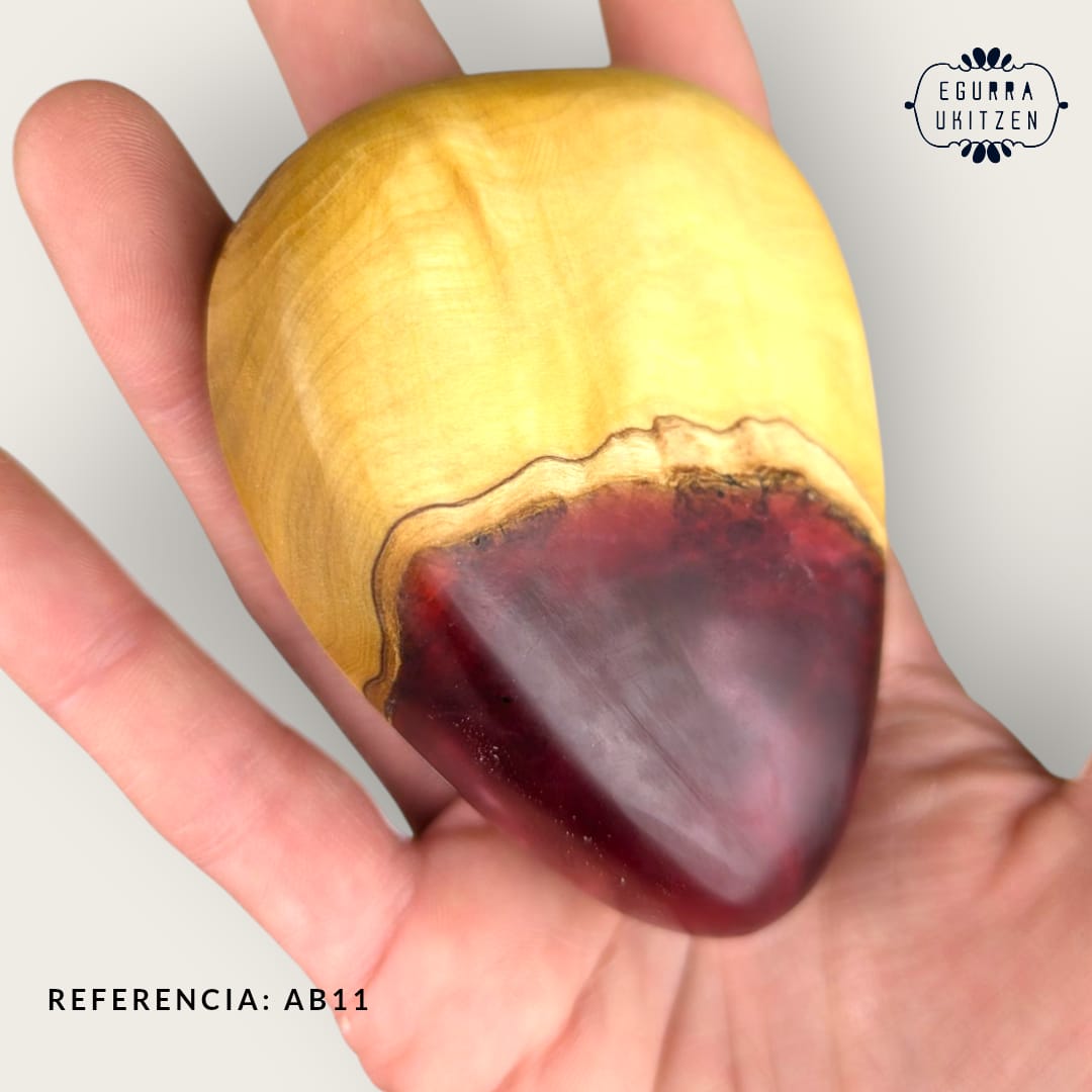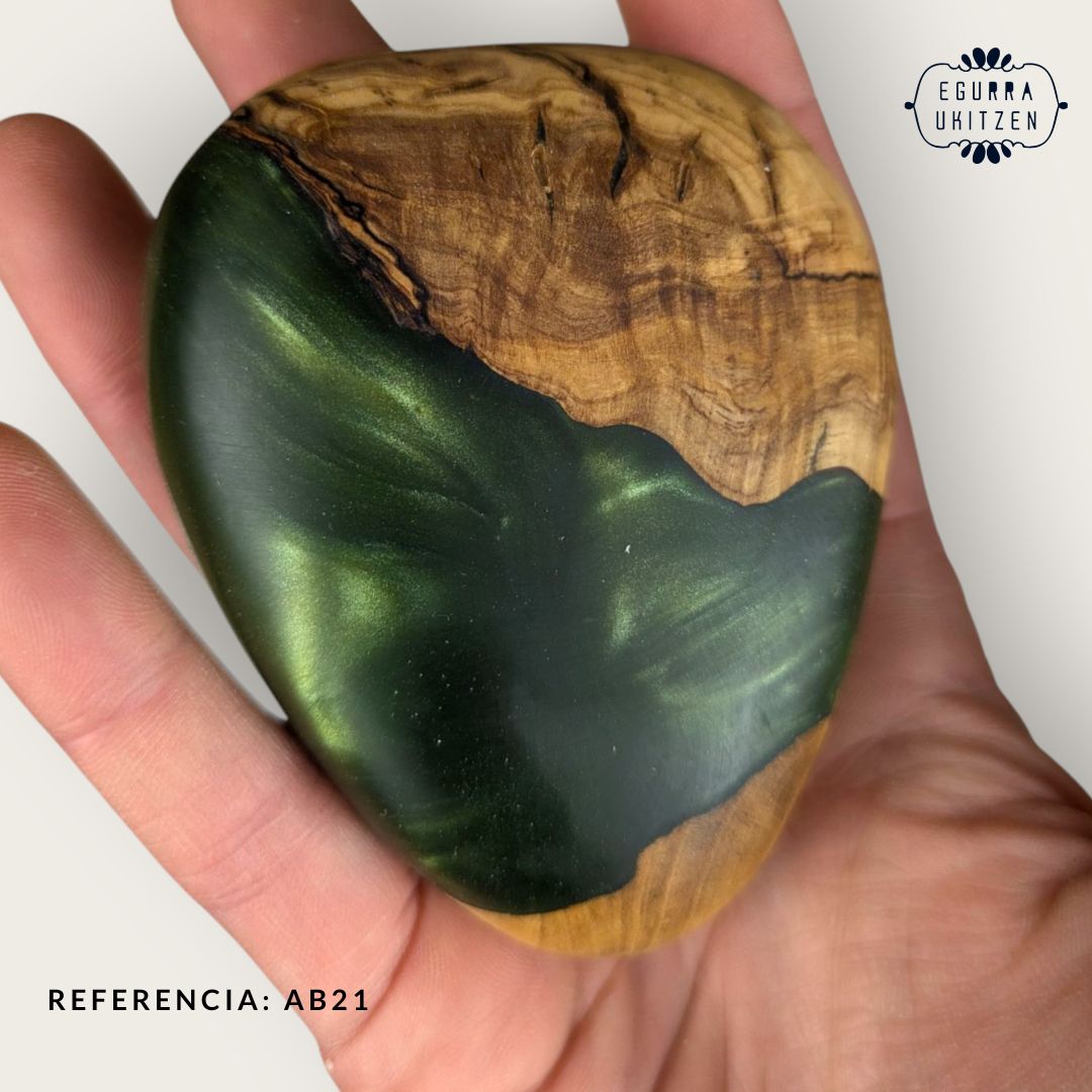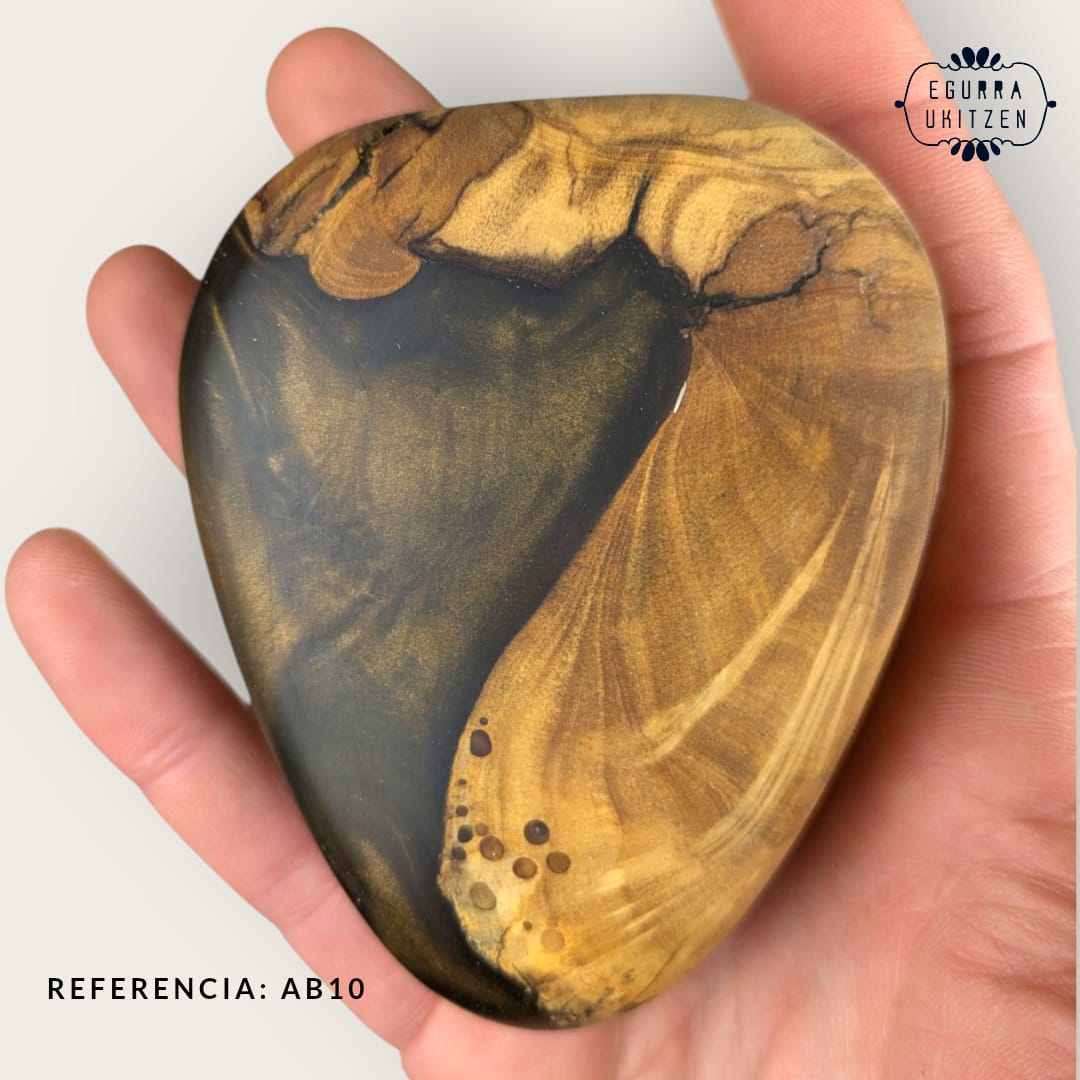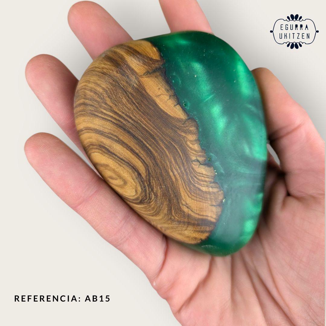Elegimos cuidadosamente cada pieza de madera, generamos diferentes formas y mezclamos con resina y diferentes tintes de color.