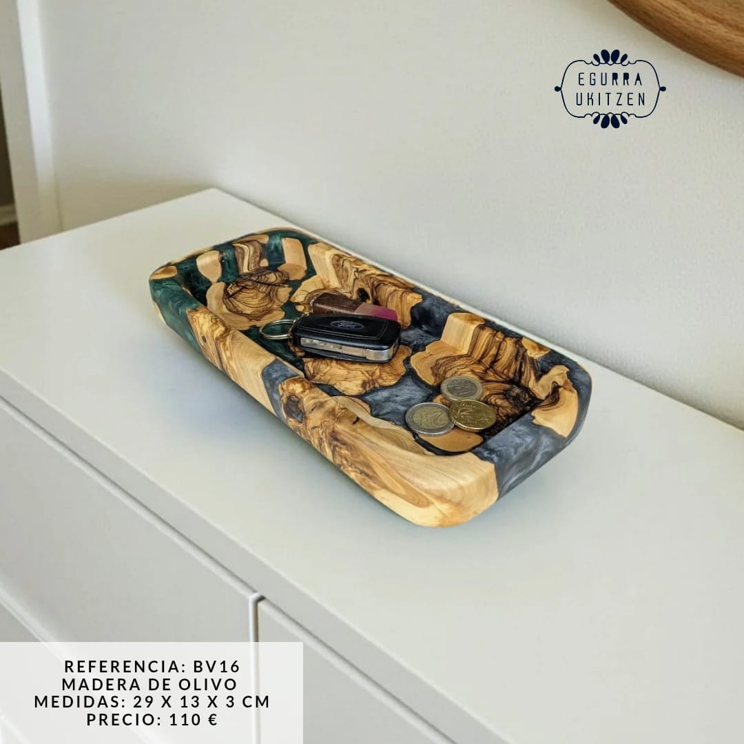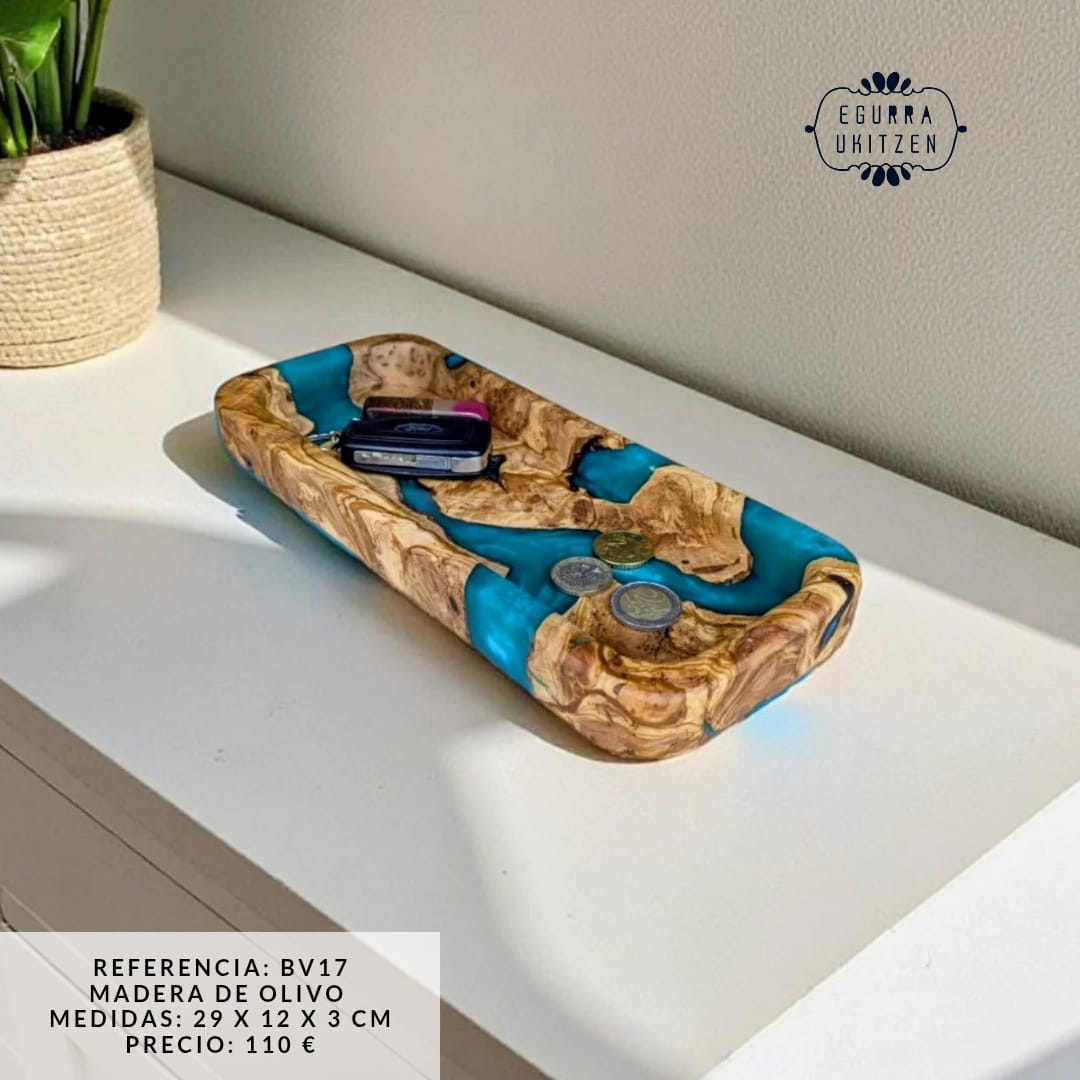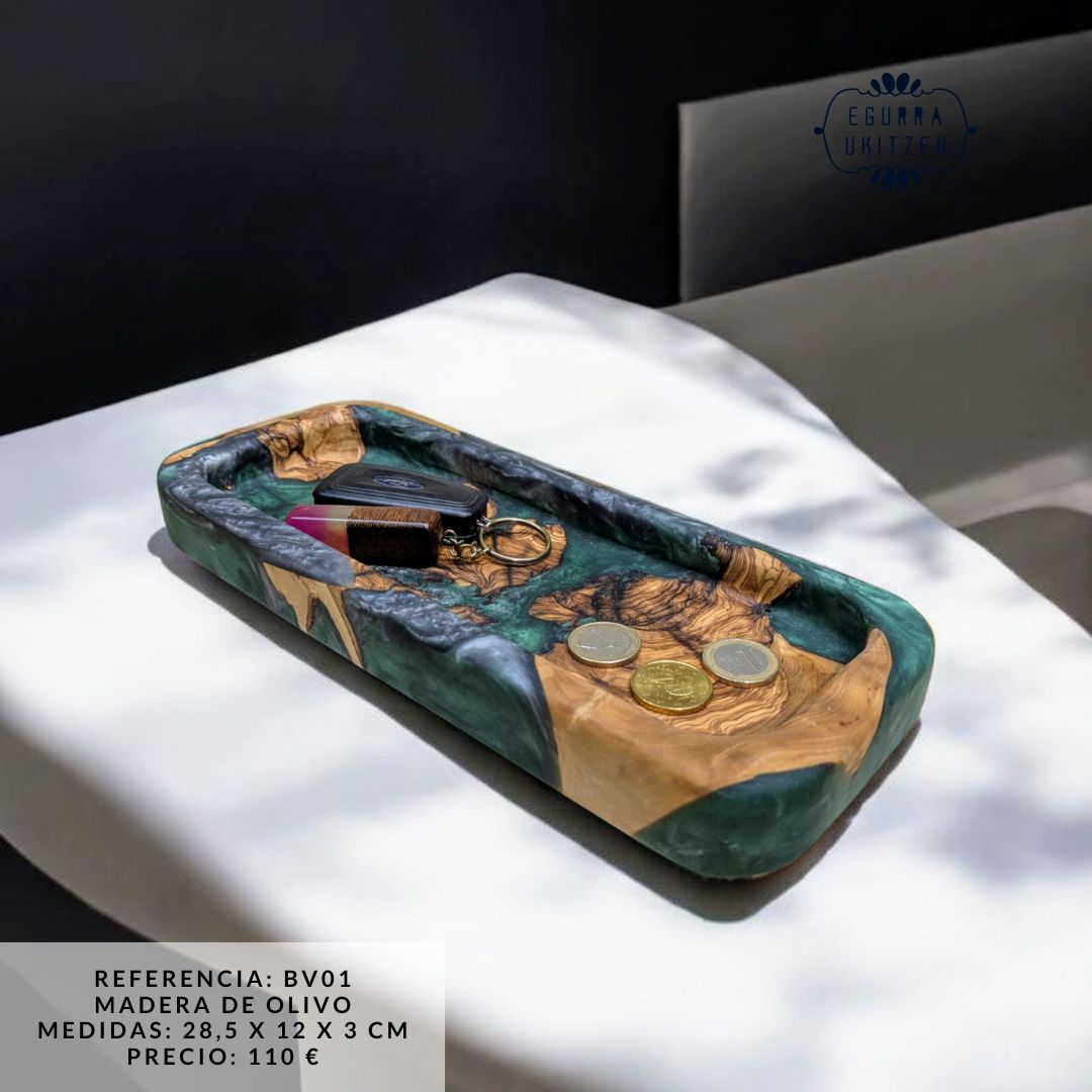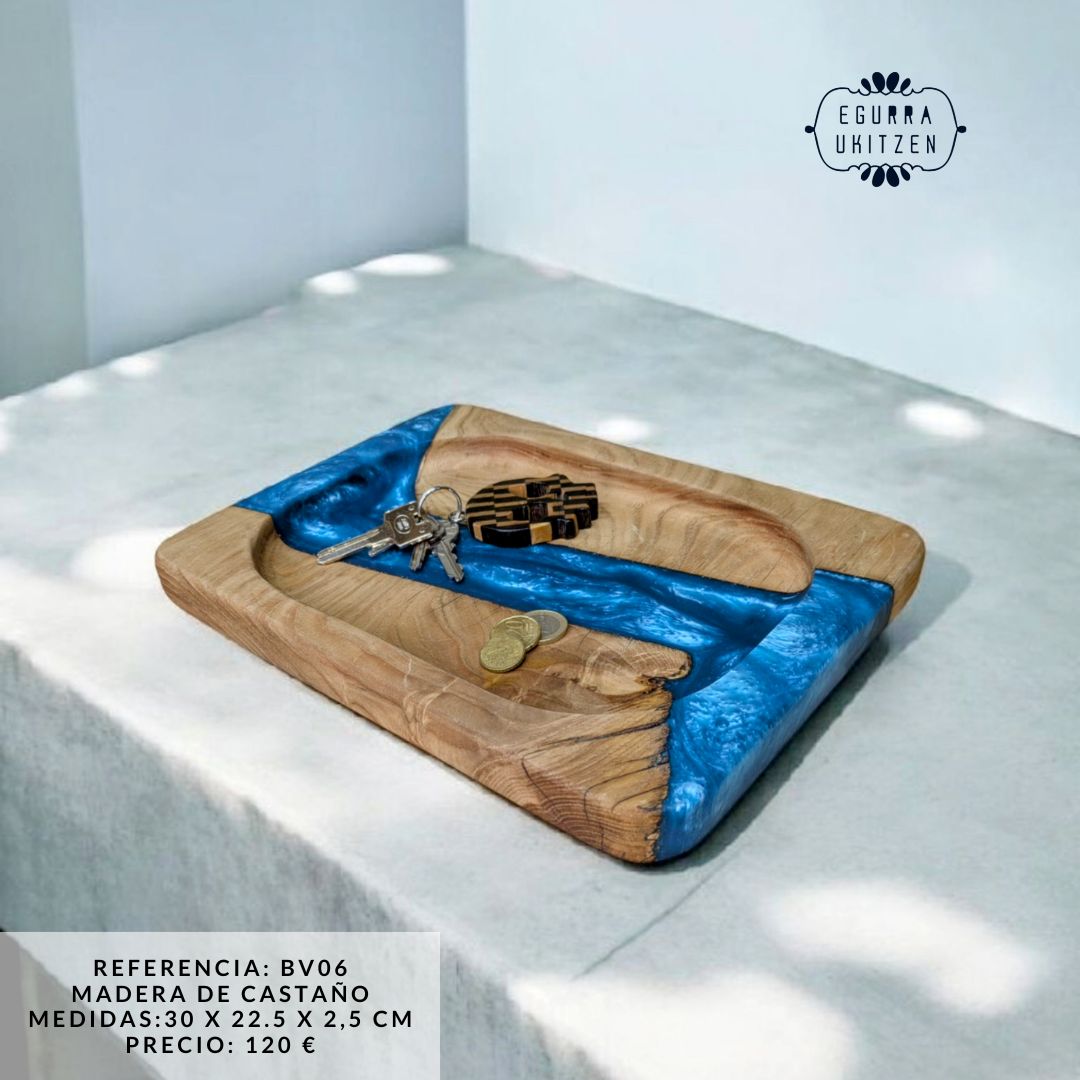Descubre la elegancia de nuestras exclusivas bandejas vacía bolsillos, diseñadas en una combinación perfecta de madera natural y resina. Cada pieza es única, fusionando la calidez de la madera con la modernidad de la resina, creando un diseño funcional y sofisticado.