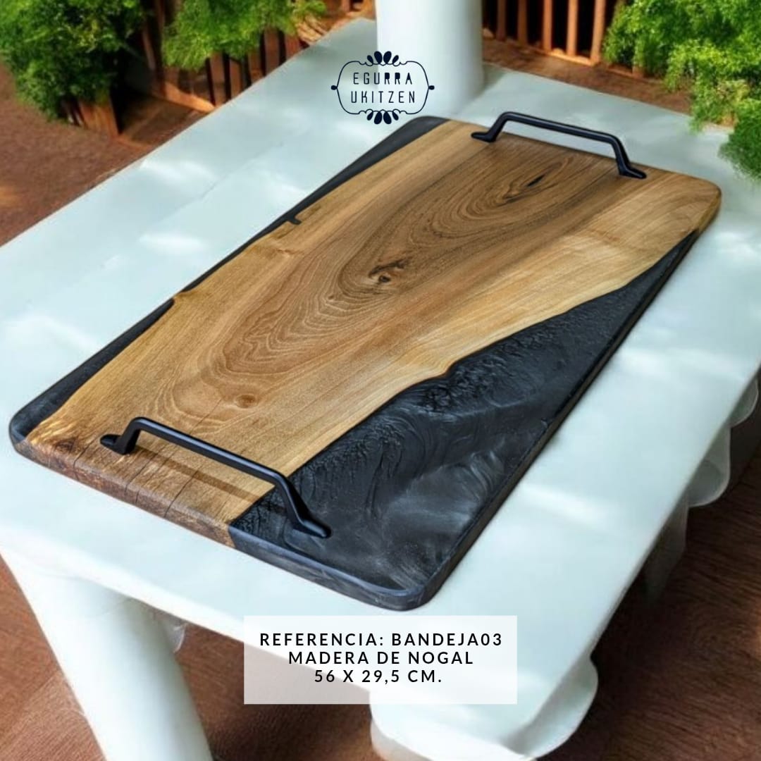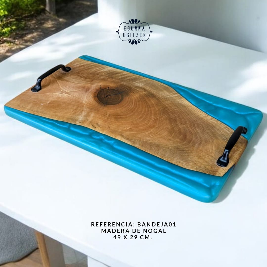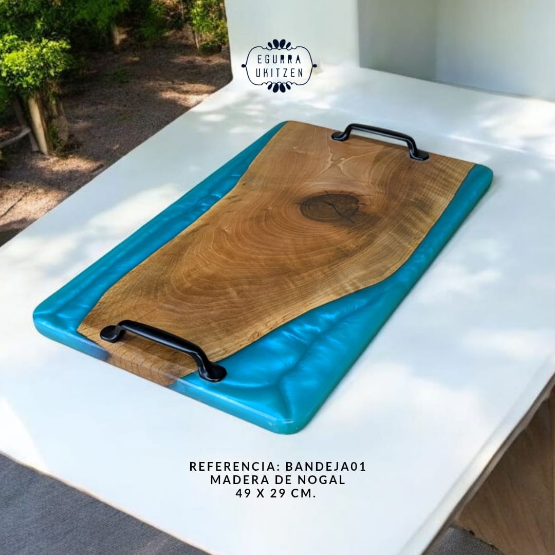 En Egurra Ukitzen, la artesanía se convierte en arte a través de nuestras exclusivas bandejas de madera y resina. Cada pieza es una creación única, donde la naturalidad de la madera se fusiona con la creatividad de la resina, dando lugar a diseños que combinan elegancia y funcionalidad. Utilizamos maderas nobles cuidadosamente seleccionadas y resina de alta calidad para garantizar la belleza, durabilidad y exclusividad de cada bandeja. Descubre cómo cada pieza cuenta una historia y aporta un toque distintivo a tu hogar.
