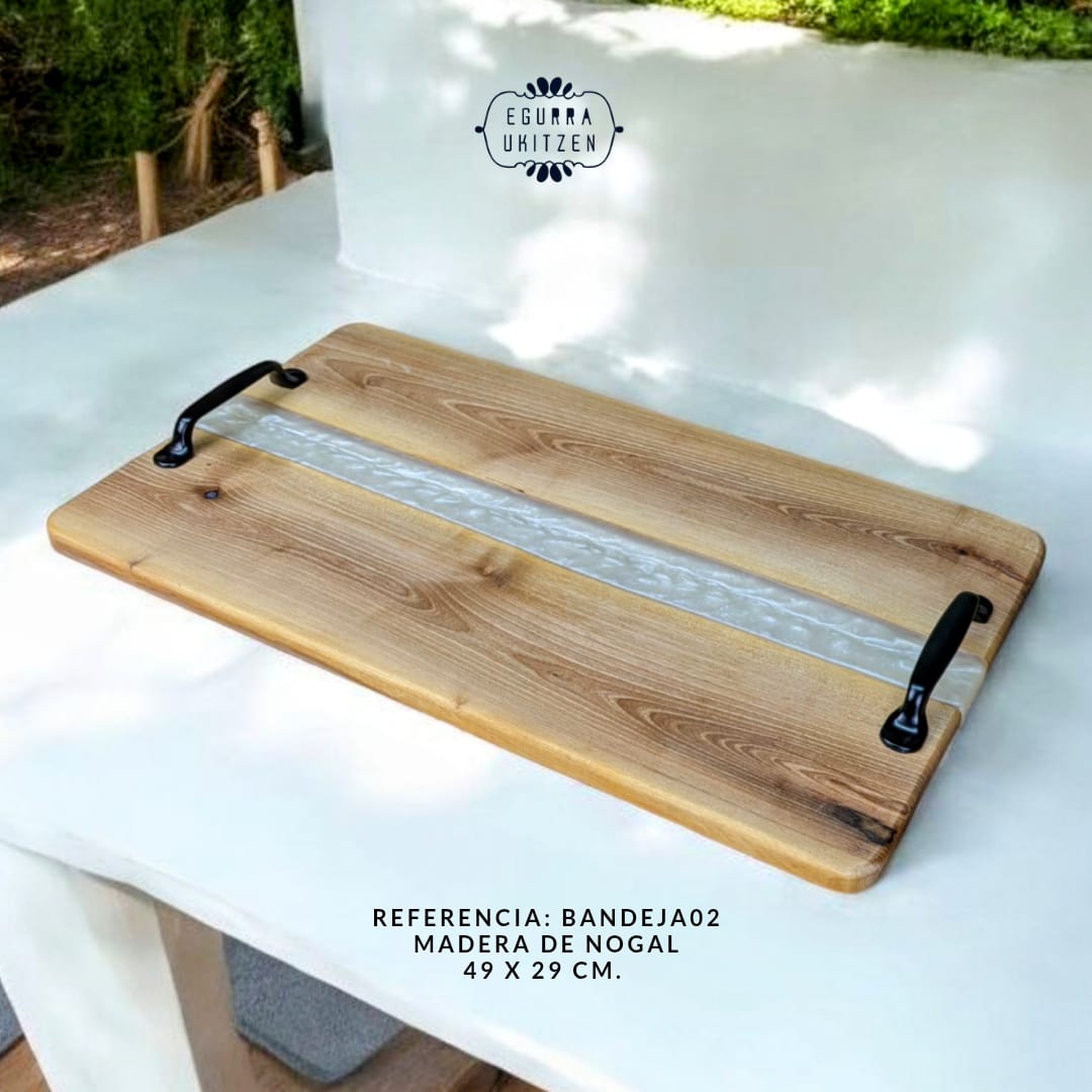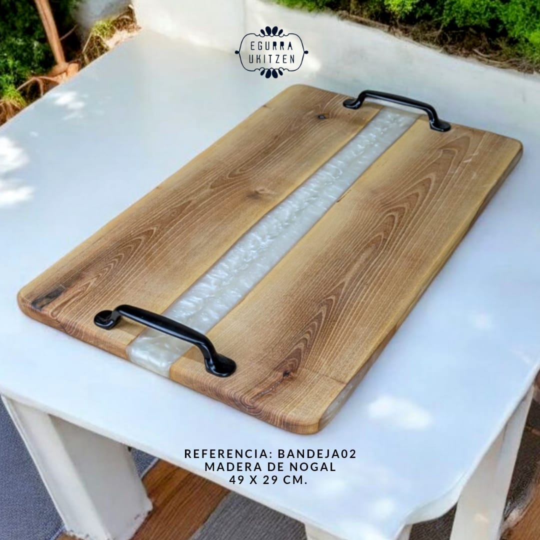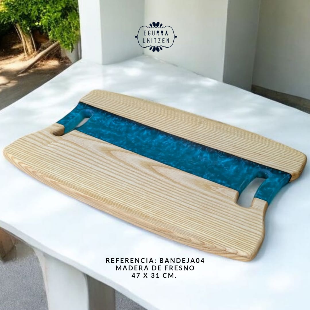 En Egurra Ukitzen, la artesanía se convierte en arte a través de nuestras exclusivas bandejas de madera y resina. Cada pieza es una creación única, donde la naturalidad de la madera se fusiona con la creatividad de la resina, dando lugar a diseños que combinan elegancia y funcionalidad. Utilizamos maderas nobles cuidadosamente seleccionadas y resina de alta calidad para garantizar la belleza, durabilidad y exclusividad de cada bandeja. Descubre cómo cada pieza cuenta una historia y aporta un toque distintivo a tu hogar.