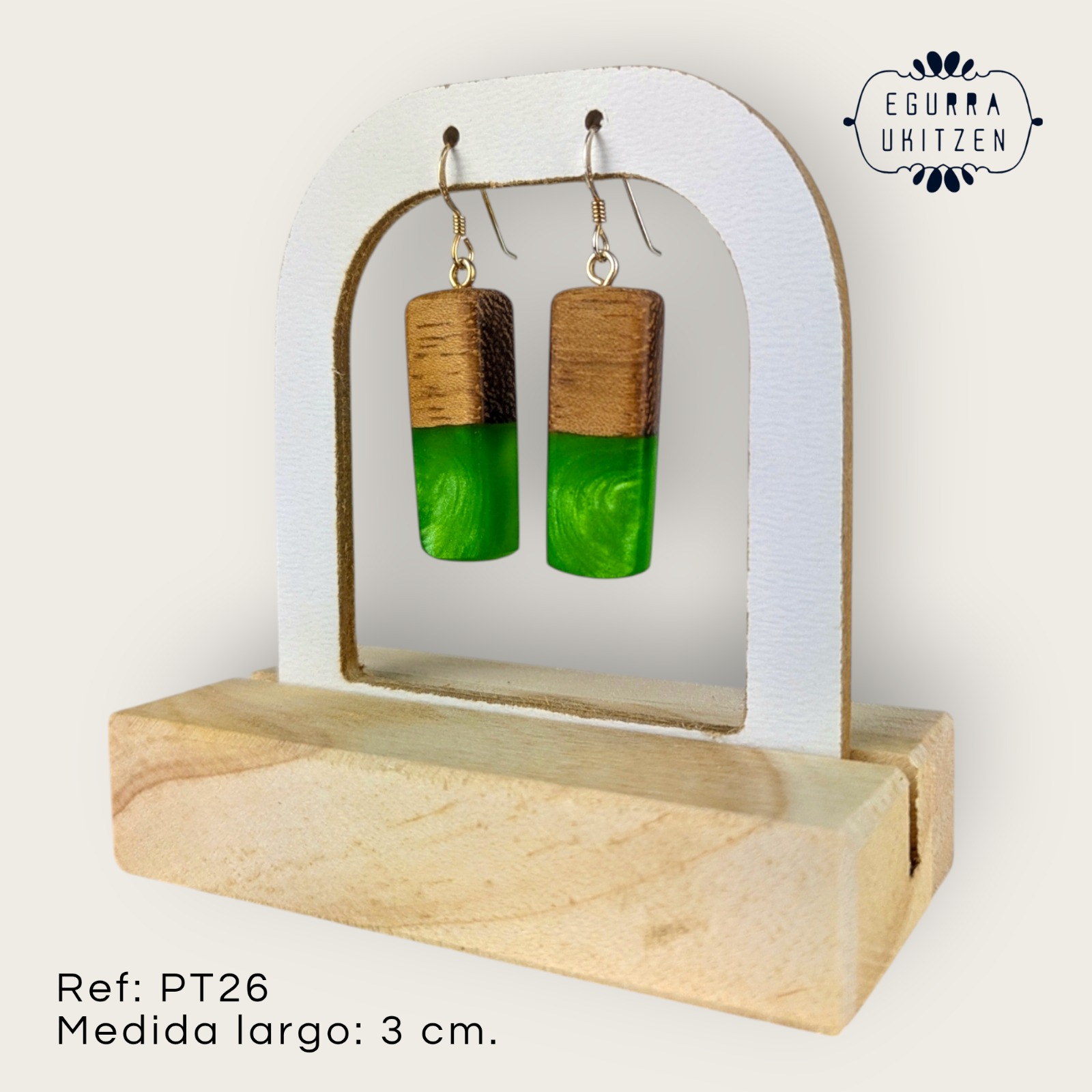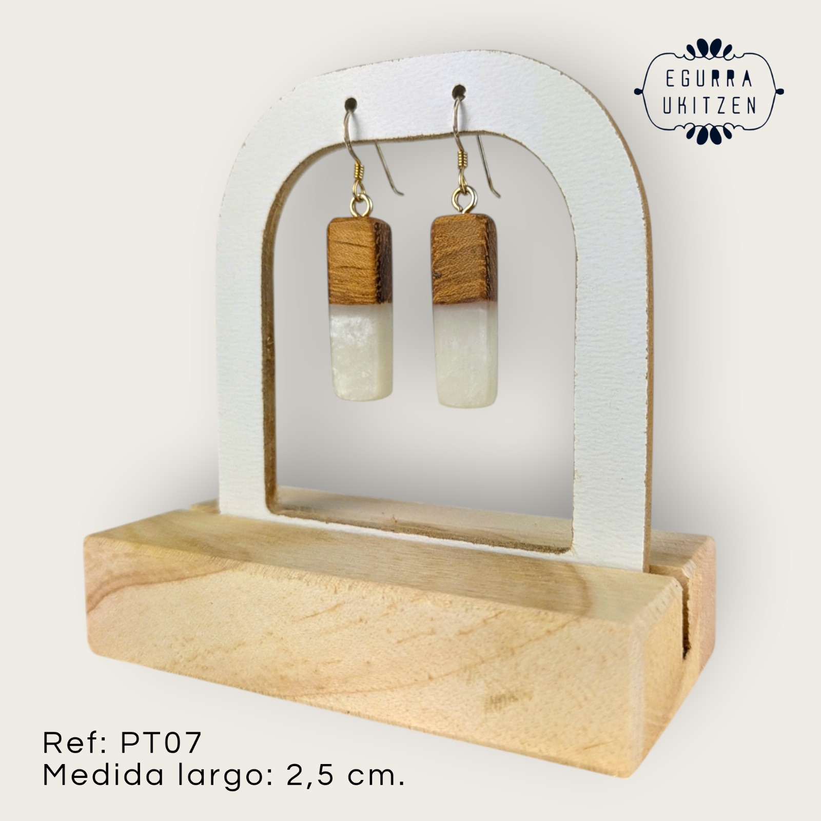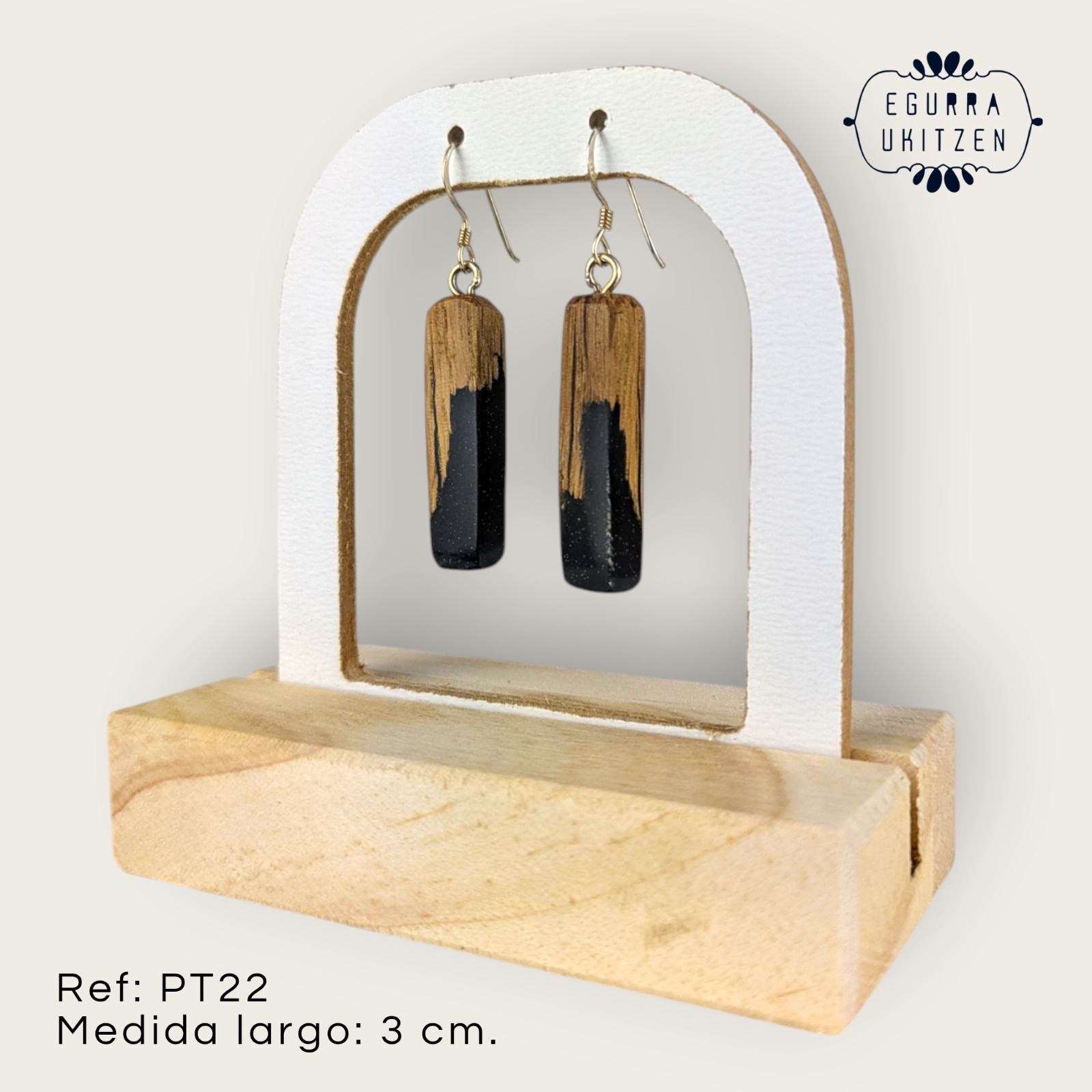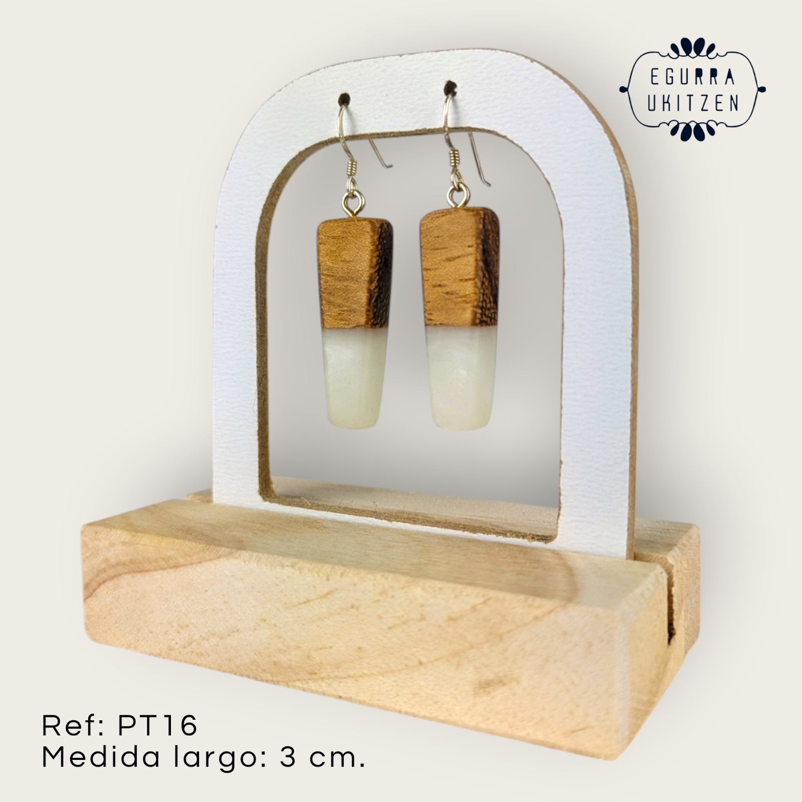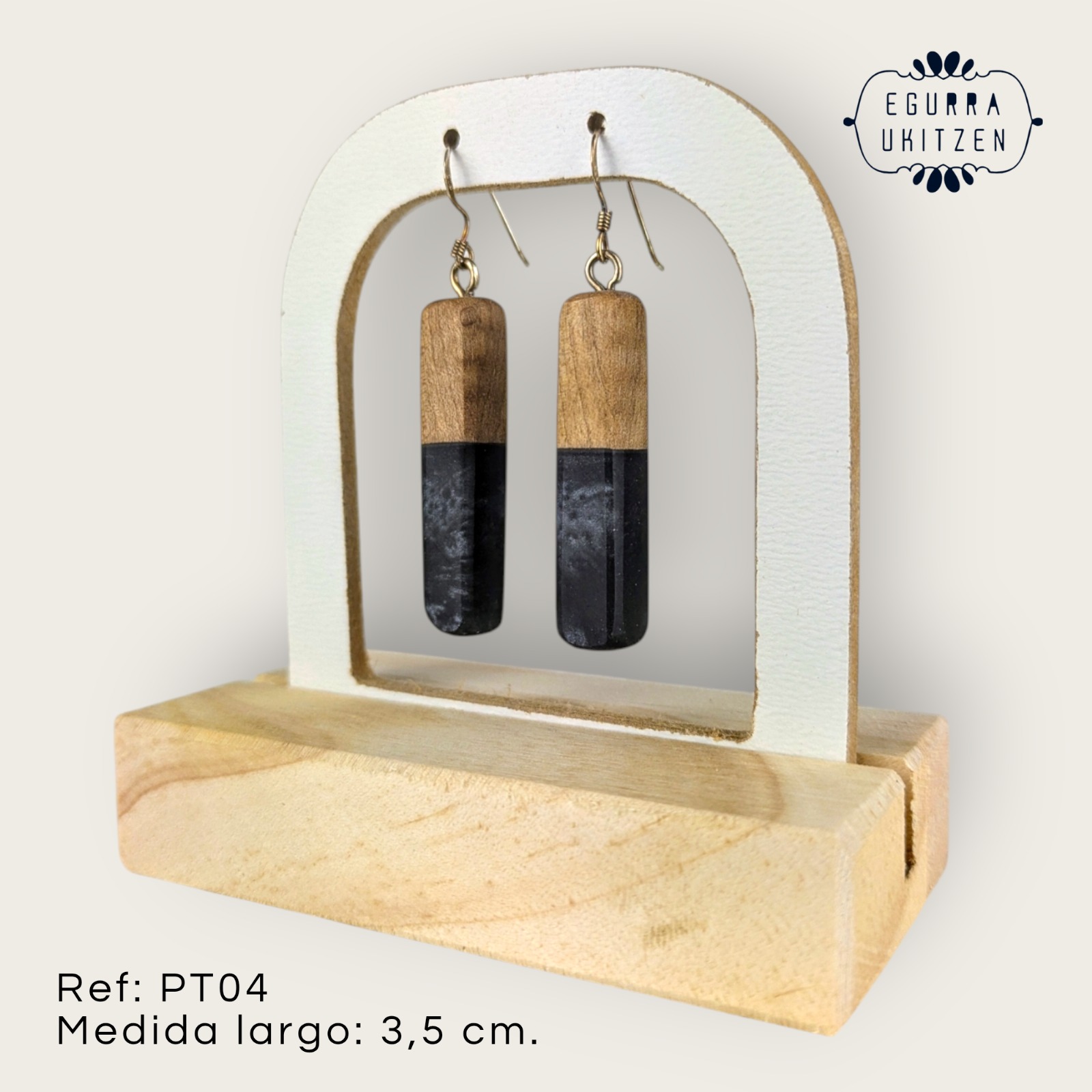 Nuestros pendientes más tradicionales, elaborados con madera y resina, fusionan estilo y sostenibilidad.