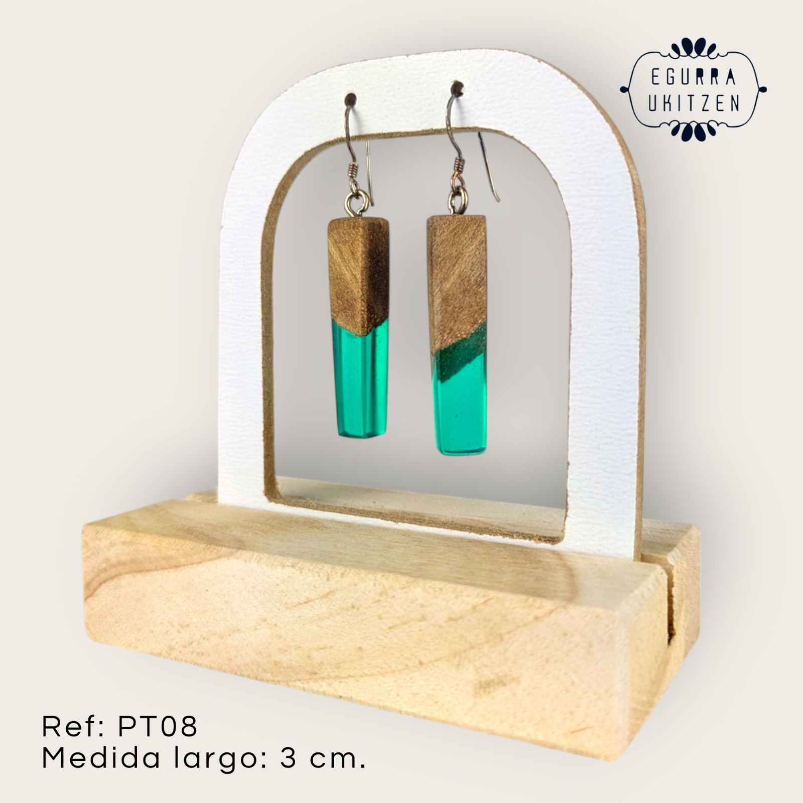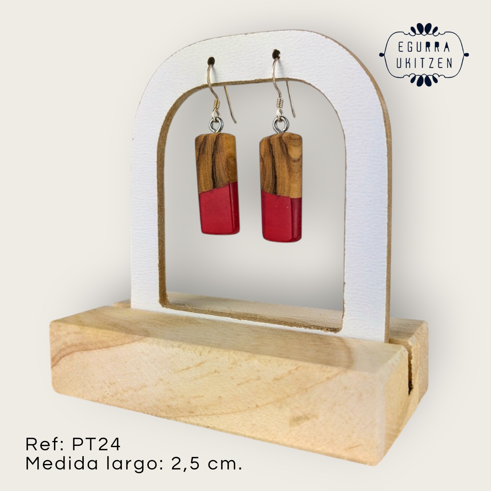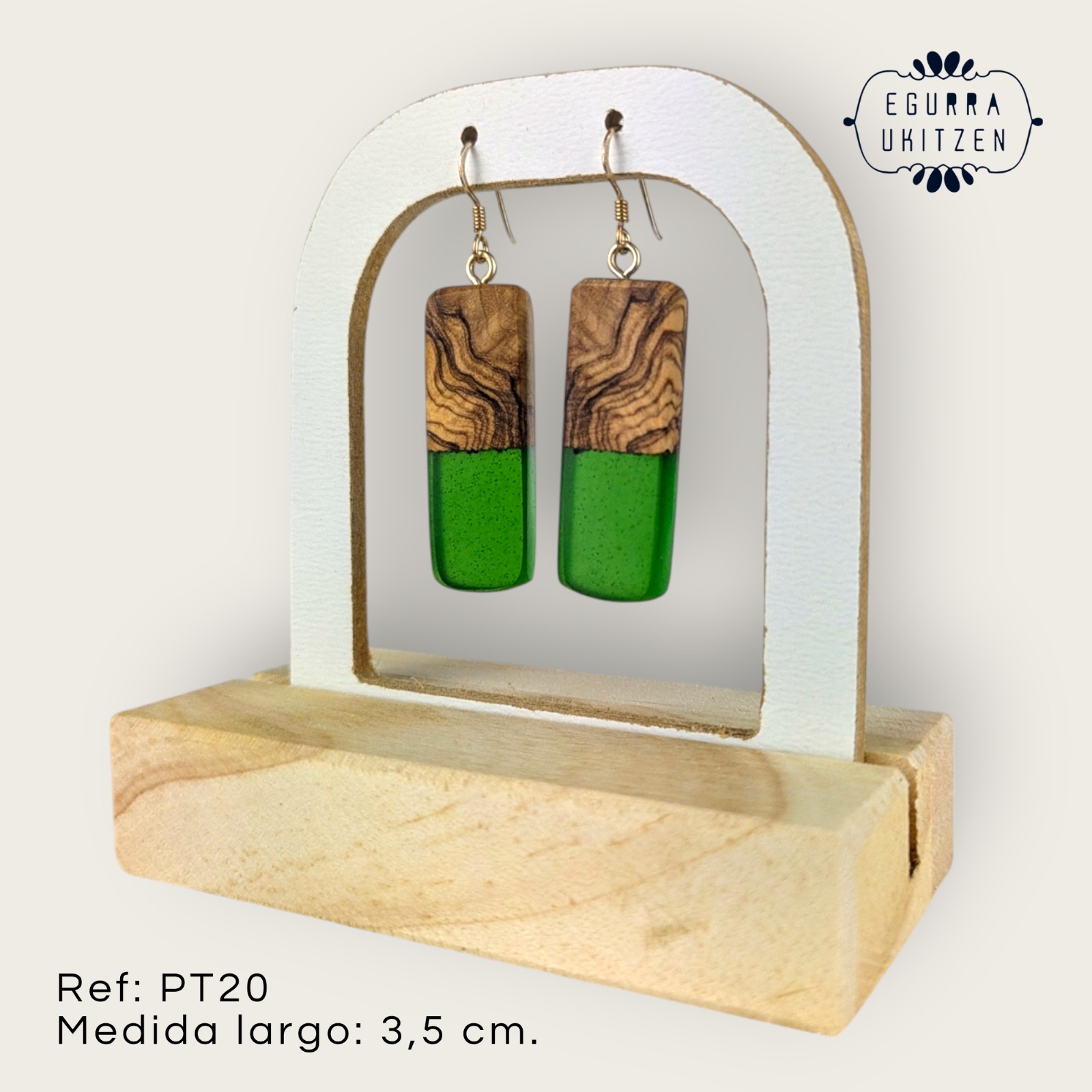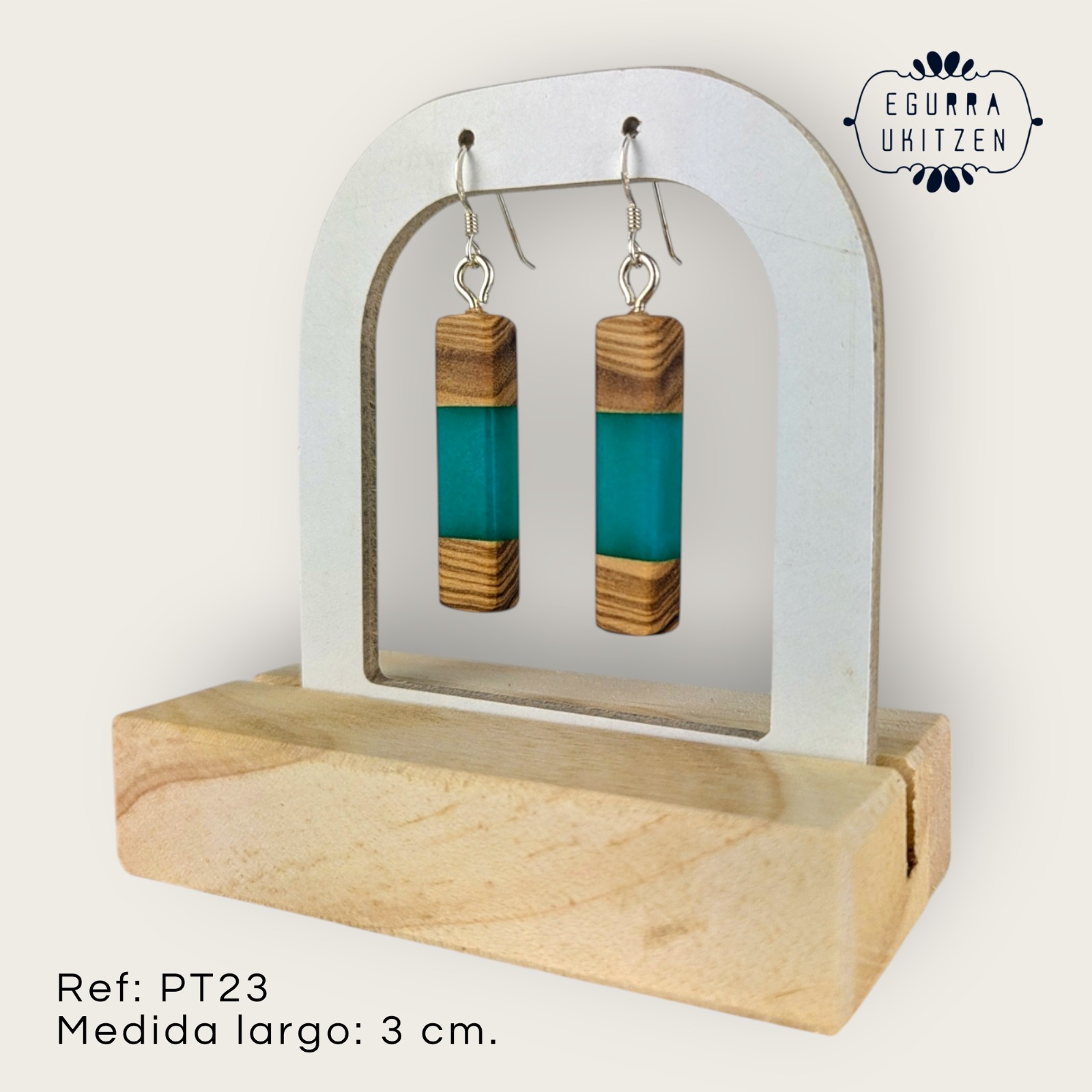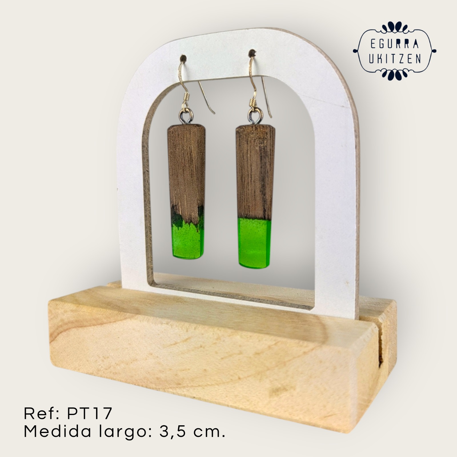 Nuestros pendientes más tradicionales, elaborados con madera y resina, fusionan estilo y sostenibilidad.