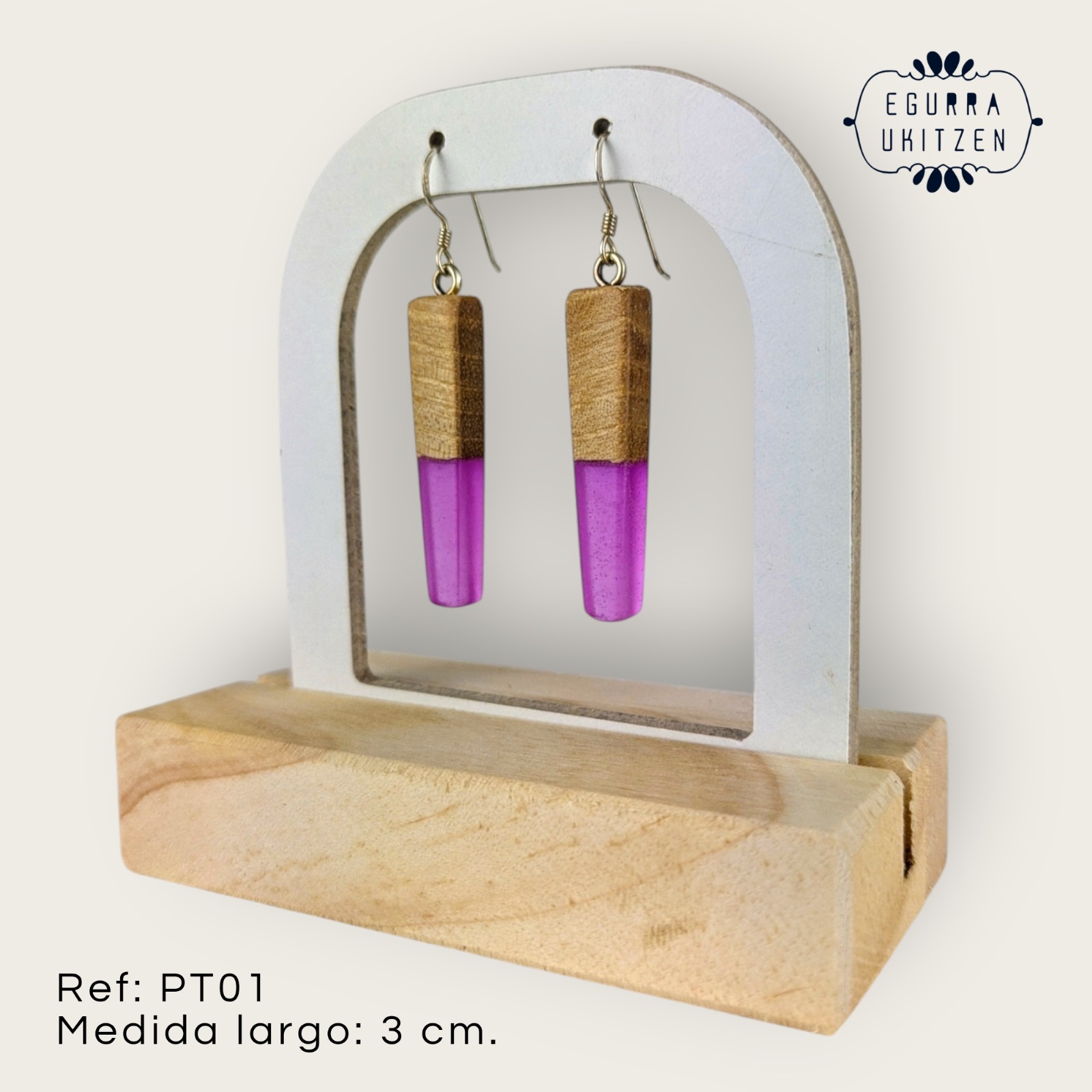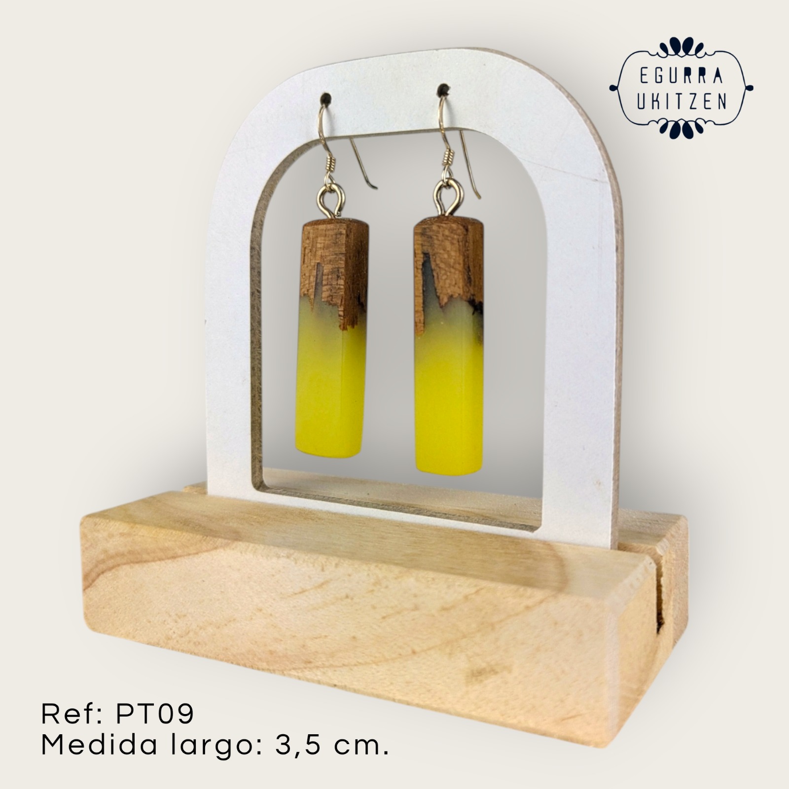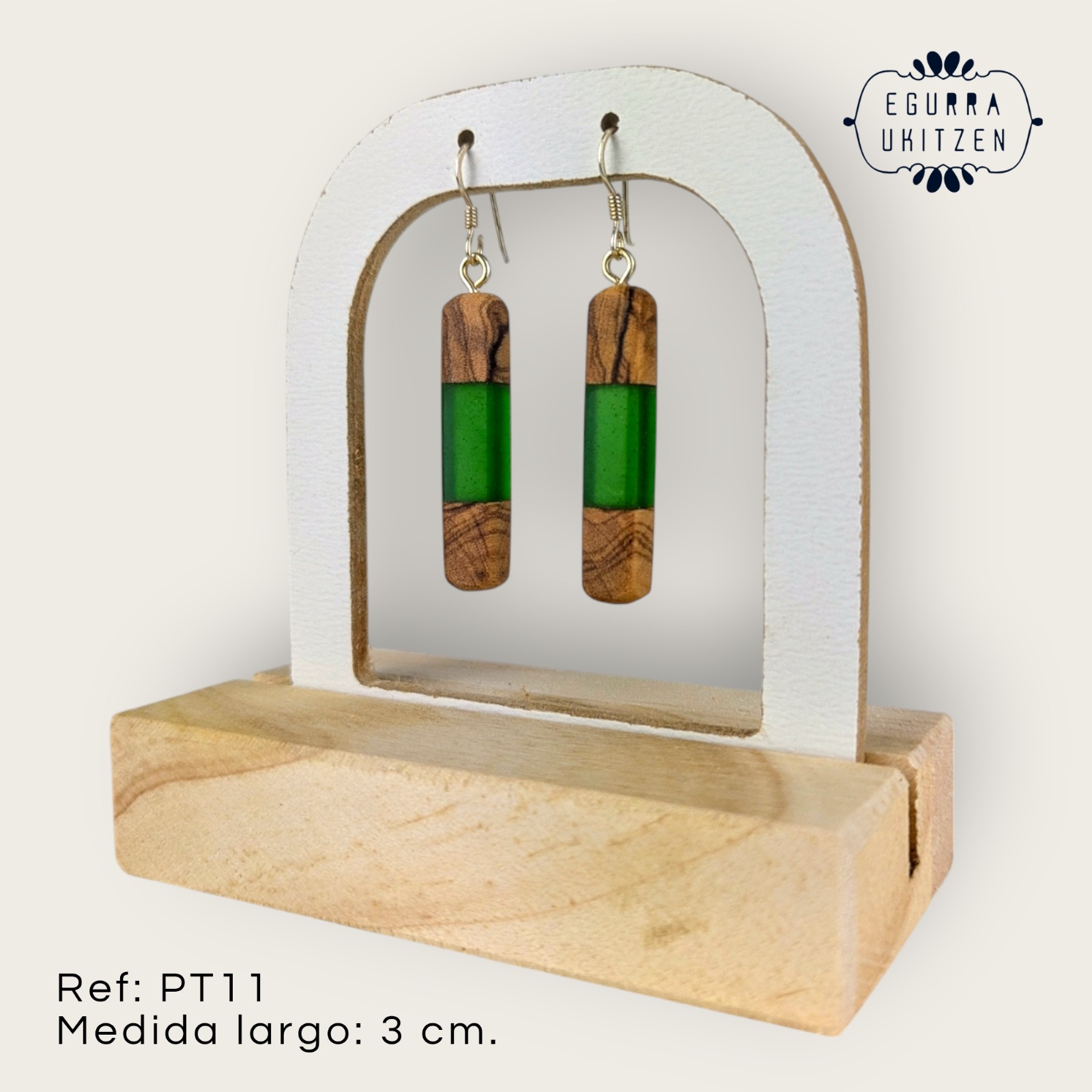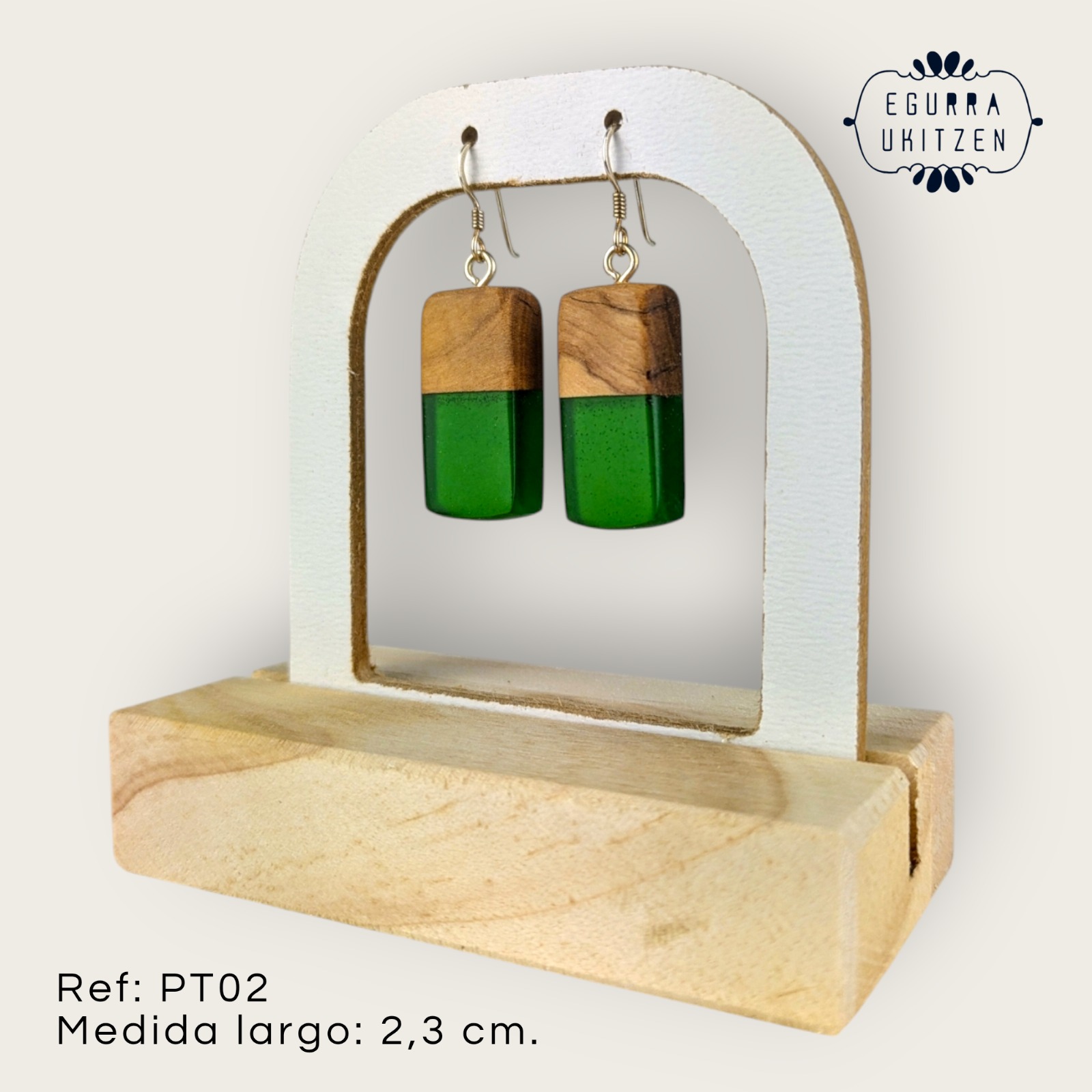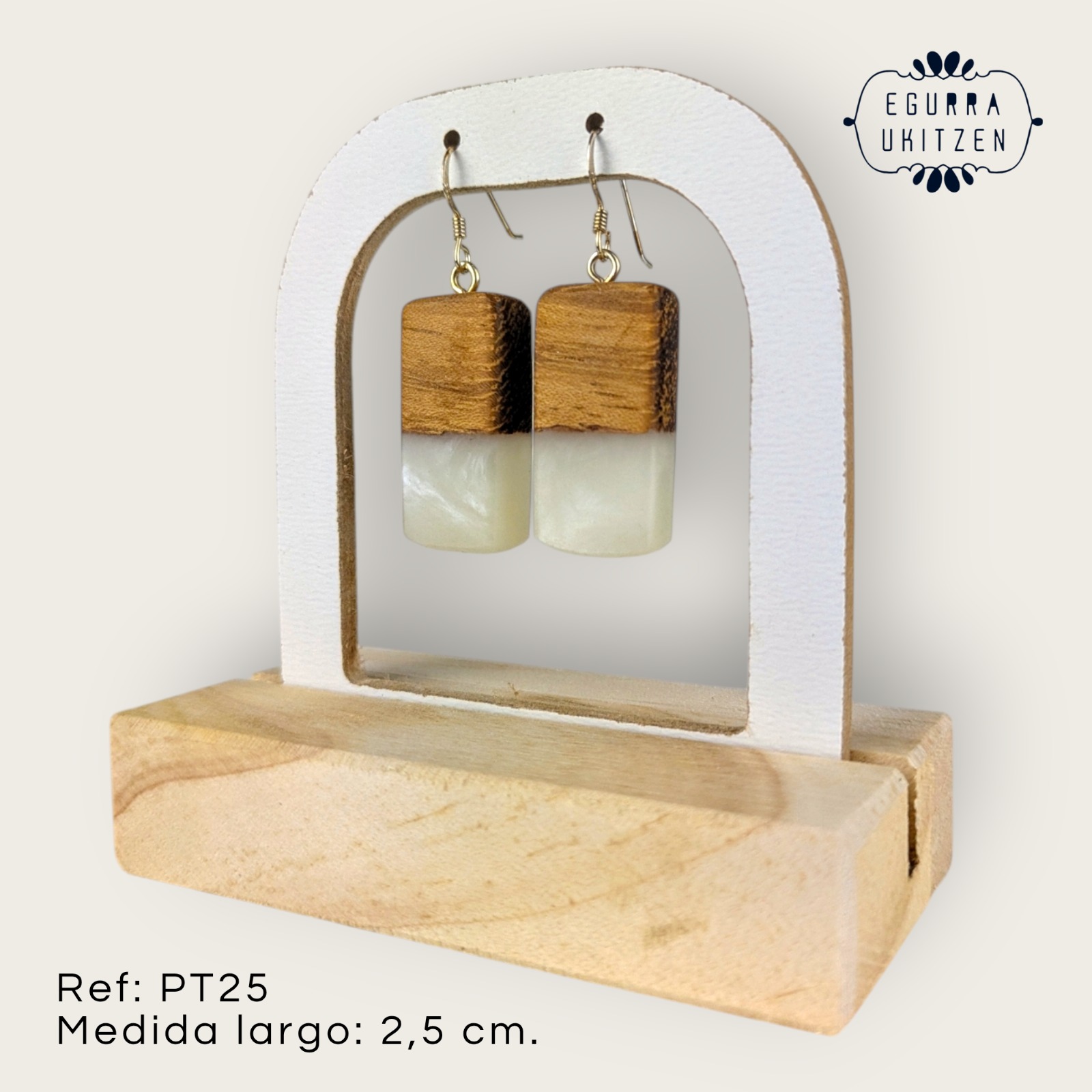 Nuestros pendientes más tradicionales, elaborados con madera y resina, fusionan estilo y sostenibilidad.