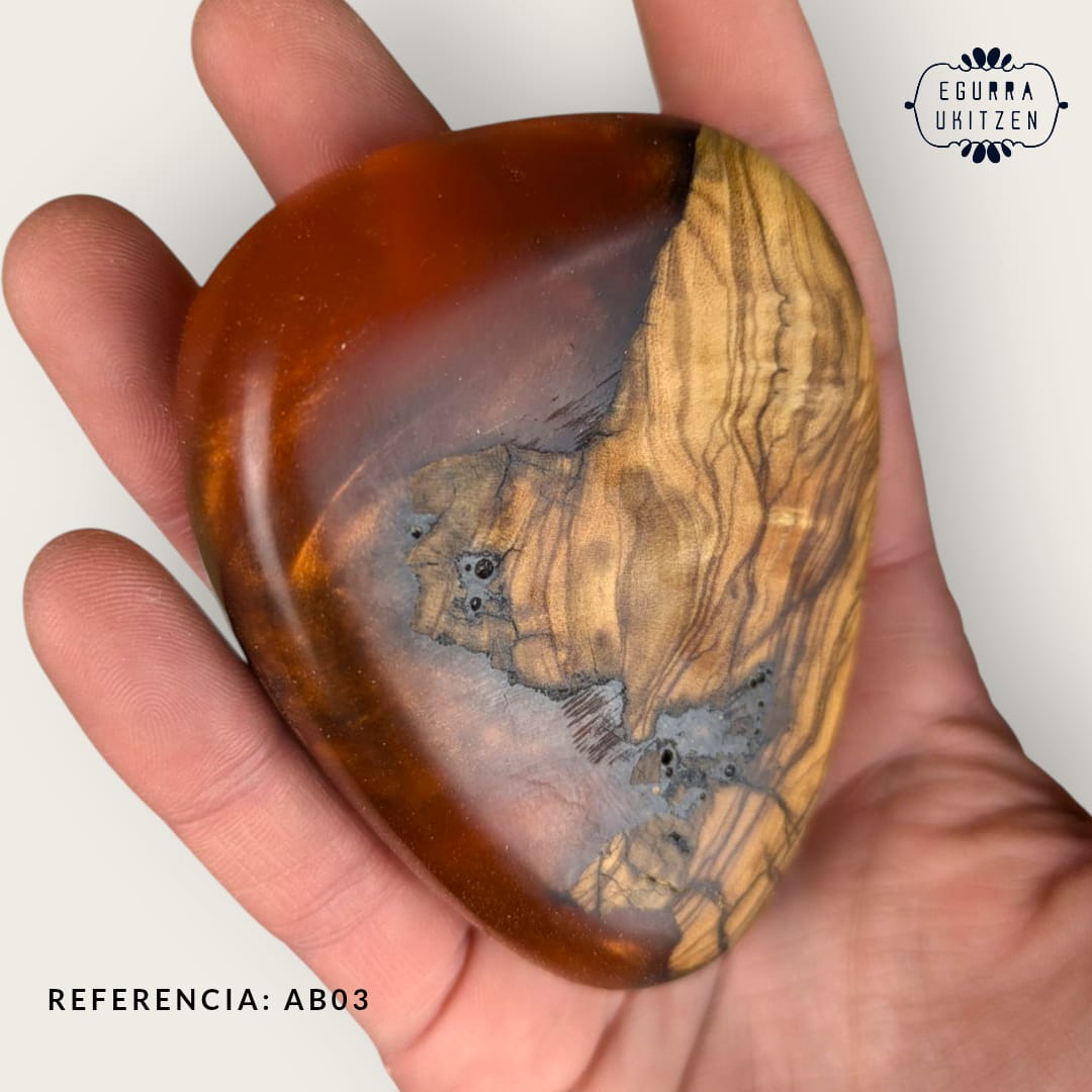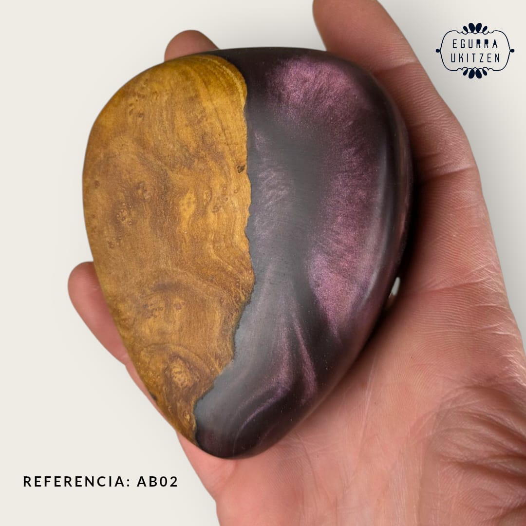 Elegimos cuidadosamente cada pieza de madera, generamos diferentes formas y mezclamos con resina y diferentes tintes de color.