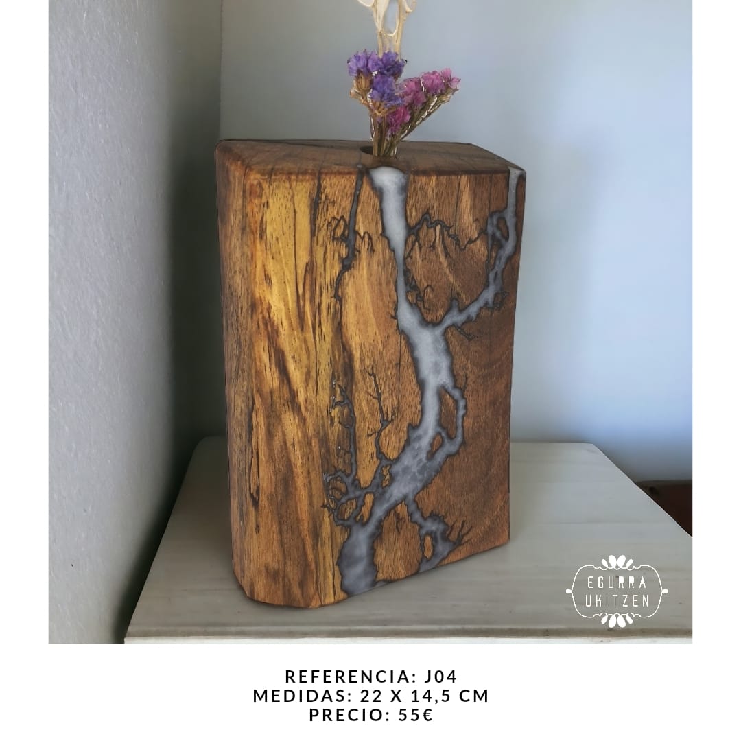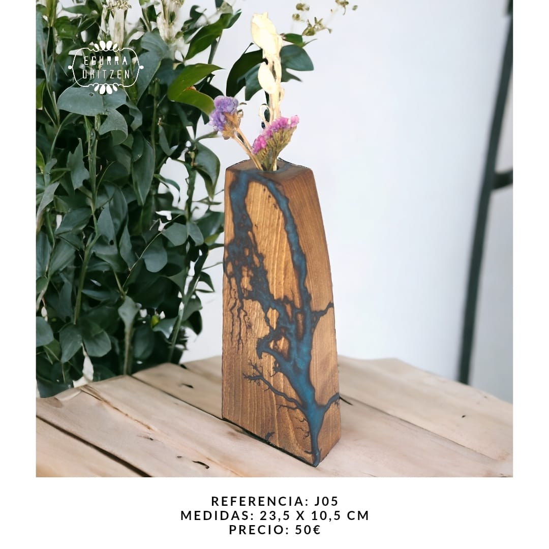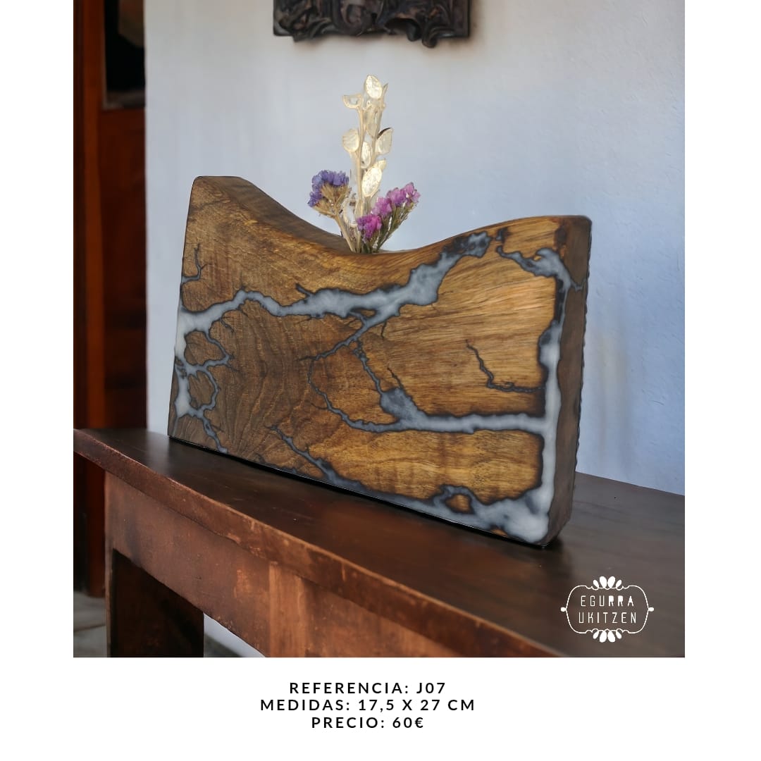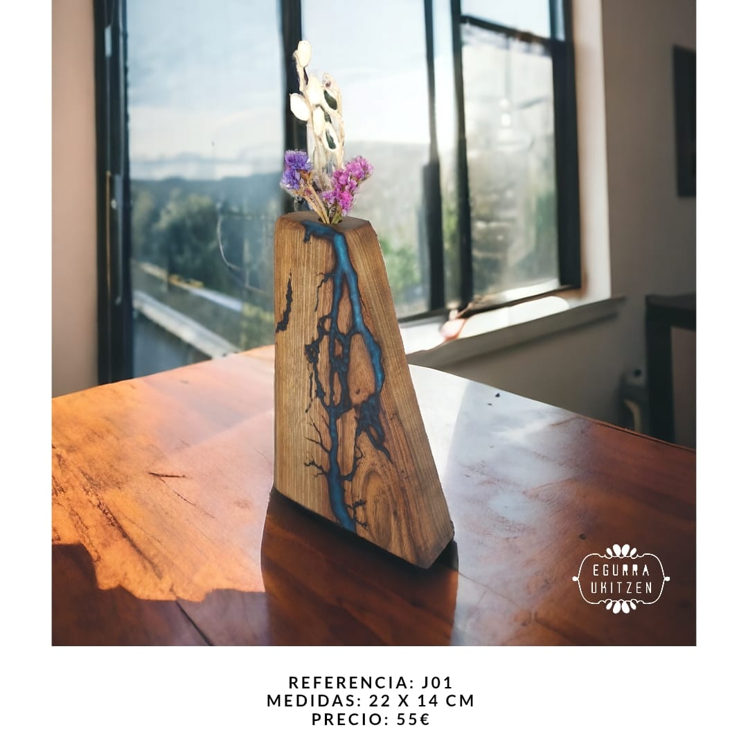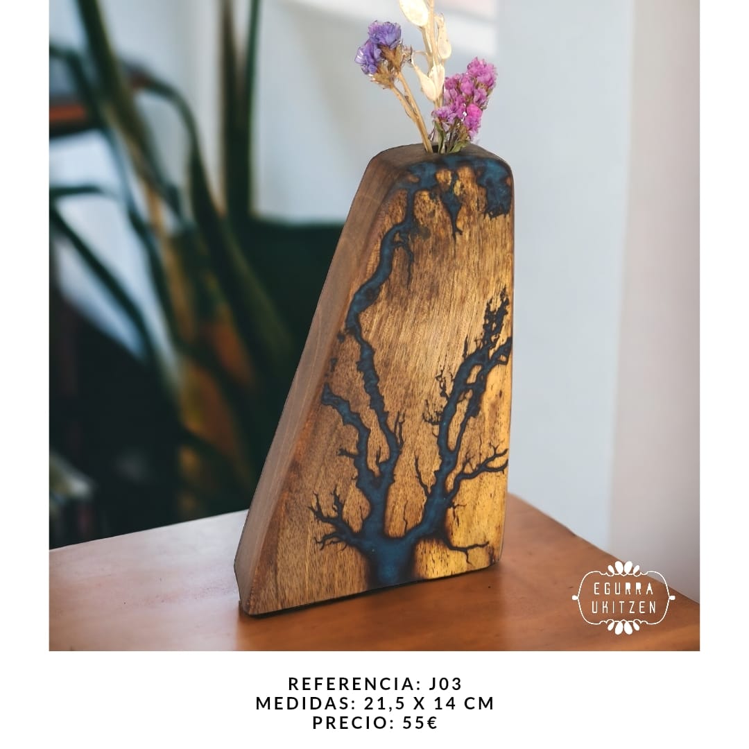 Cada detalle de estos jarrones está trabajado a mano, y sus surcos eléctricos están rellenados con resina pigmentada, añadiendo un acabado elegante y resistente. Perfecto para decorar cualquier espacio con un toque de naturaleza, arte y sofisticación.