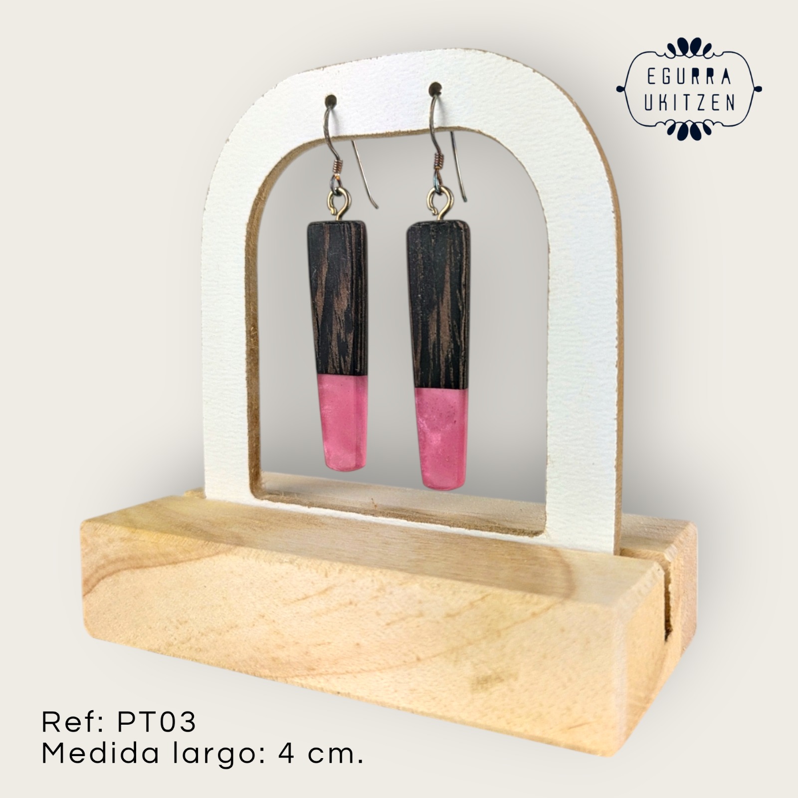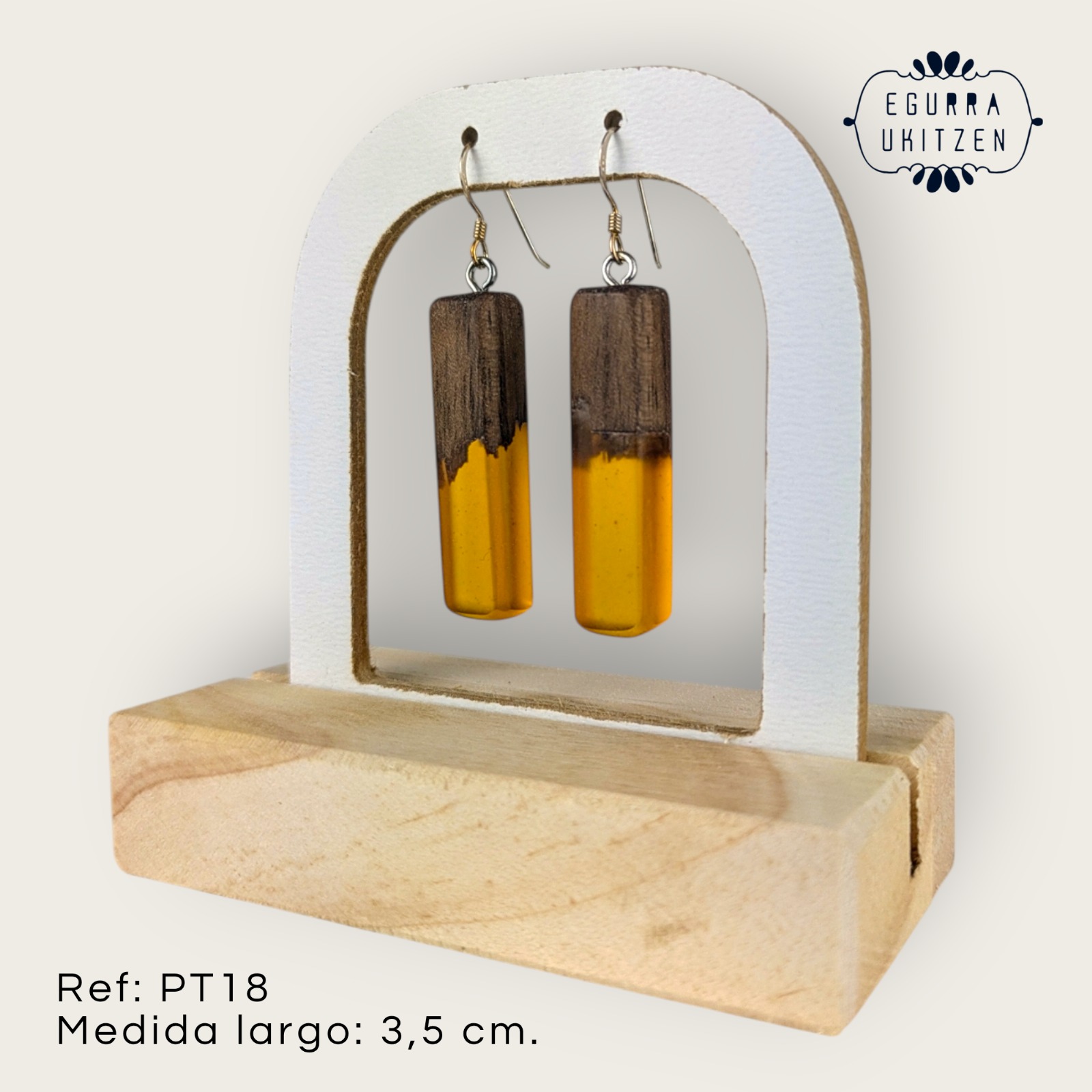Nuestros pendientes más tradicionales, elaborados con madera y resina, fusionan estilo y sostenibilidad.