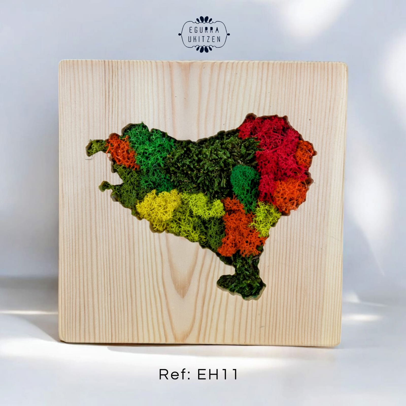 Cuadros de Euskal Herria con musgo y líquenes preservados